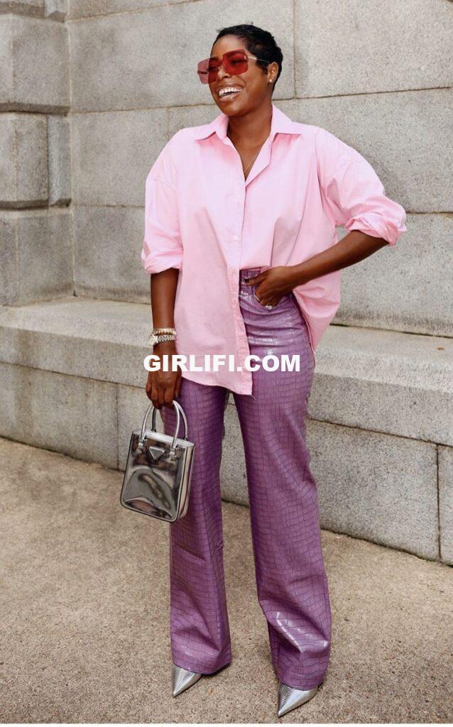 Accessories are ideal for incorporating a touch of purple into your ensemble if you’re not ready to go all out in full-on purple attire. A purple purse, belt, or dramatic earrings can instantly elevate your ensemble without being overpowering. Simple accessories like sunglasses, a scarf, or a purple headband can make a big fashion statement.