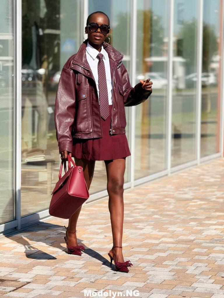 One of the easiest ways to wear burgundy is to let it stand on its own. This means wearing it as a complete outfit or as your main piece of clothing. A burgundy dress, jumpsuit, or two-piece set instantly looks classy and well-put-together. You do not need to do too much when the colour is already doing the work for you.